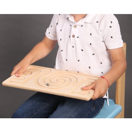 Ruční dřevěný balanční labyrint - cestička osmička se 3 kovovými kuličkami menší na zábavné procvičování především motoriky, koordinace oko-ruka a soustředění. Vhodné i jako podpůrná pomůcka, udržení pozornosti. Dítě může zkoušet jezdit na jednu stranu a pak i zpátky, s jednou kuličkou i s více kuličkami naráz. Podložku lze využít také jako cestičku na ježdění prstíkem. Zábava, trénování koncentrace...