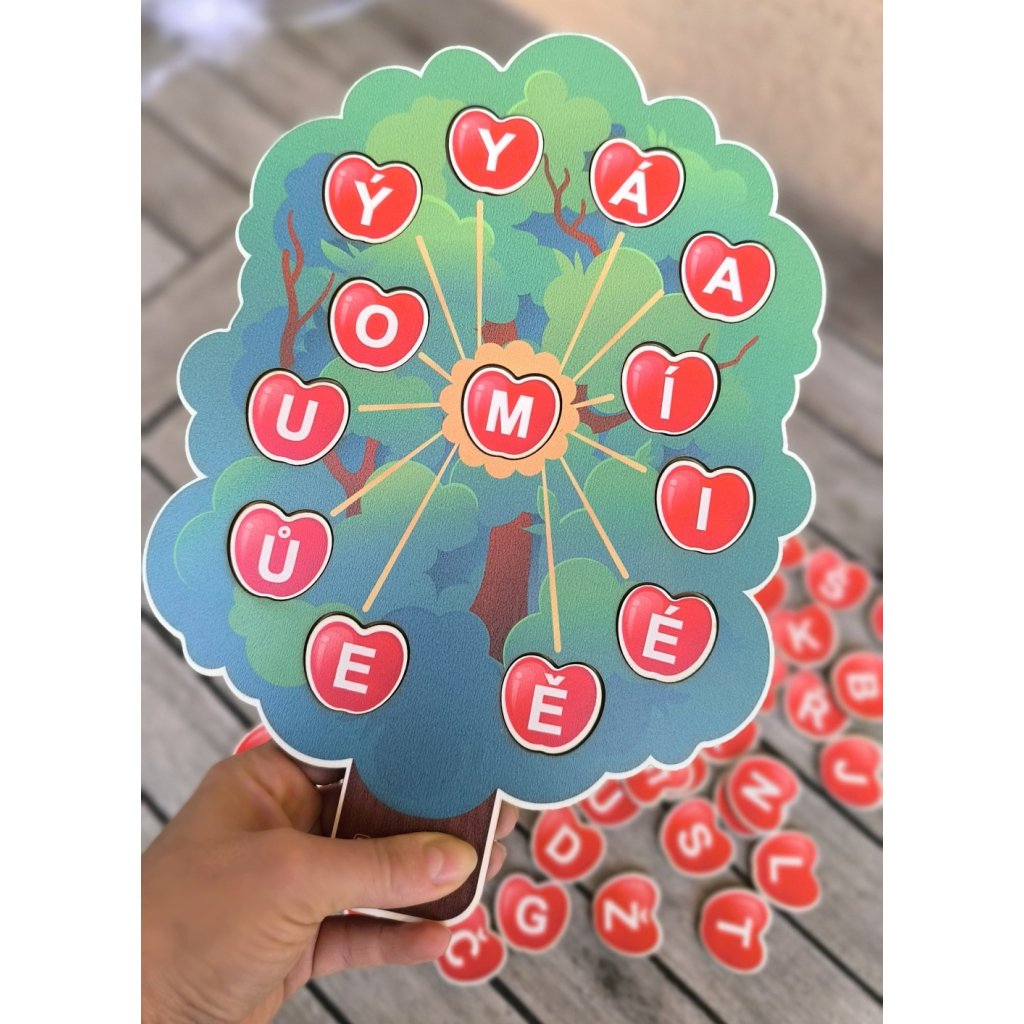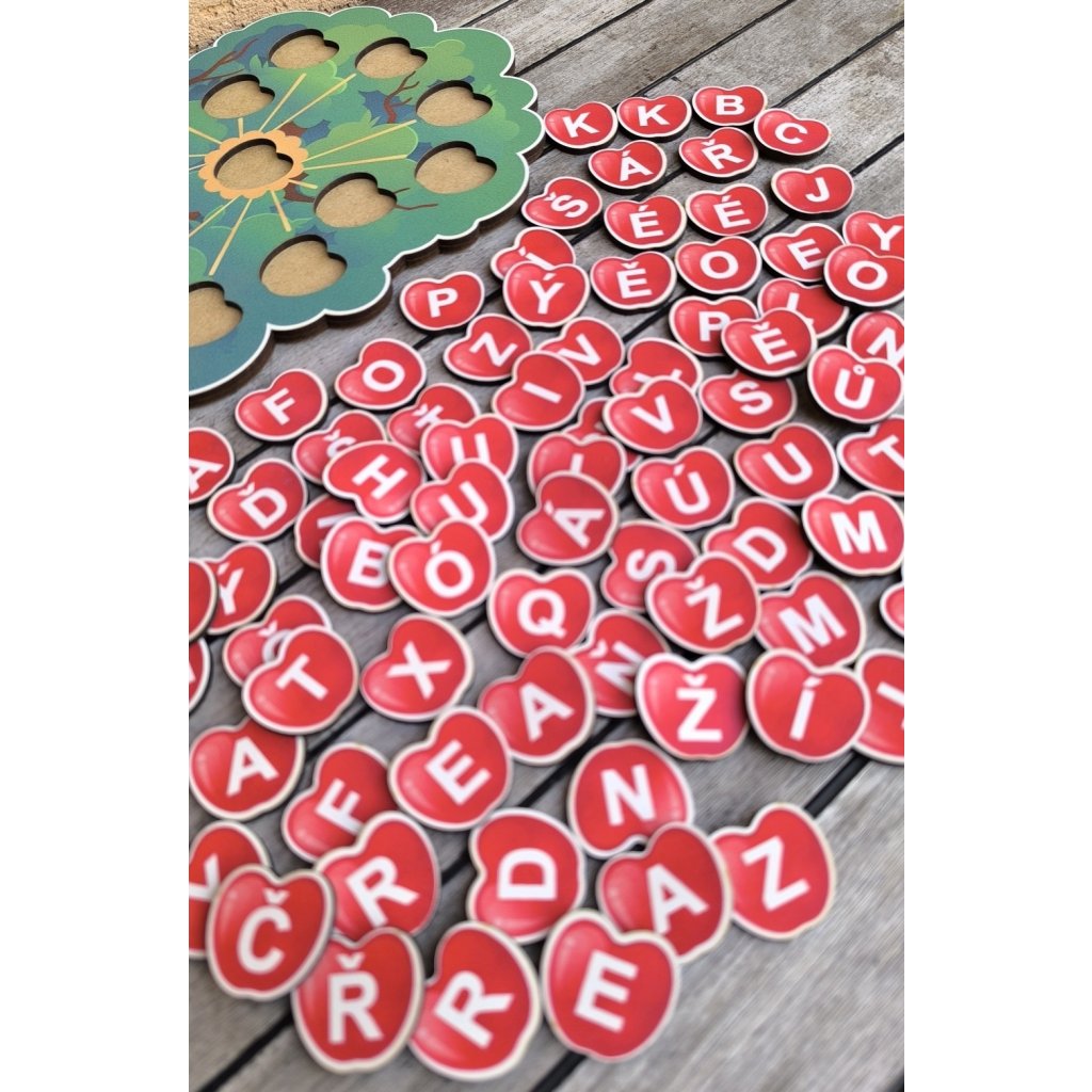 Unikátní sada jablíčkové abecedy (81 písmen) a čtecího stromku! Bezkonkurenční množství písmenek velké tiskací české abecedy i s diakritikou (včetně písmen jako Ď a Ť), ze kterých poskládáte mnoho slov. Líbivé provedení písmen - jablíček, které se bude dětem líbit. Využijete na mnoho různých aktivit. Velký čtecí strom umožňuje variabilní vkládání písmen a jejich spojování (procvičování slabik, první čtení...). Dítě může při vyslovování a spojování písmen jezdit zároveň prstíkem po čárách stromu. Vhodná pomůcka i pro logopedy.