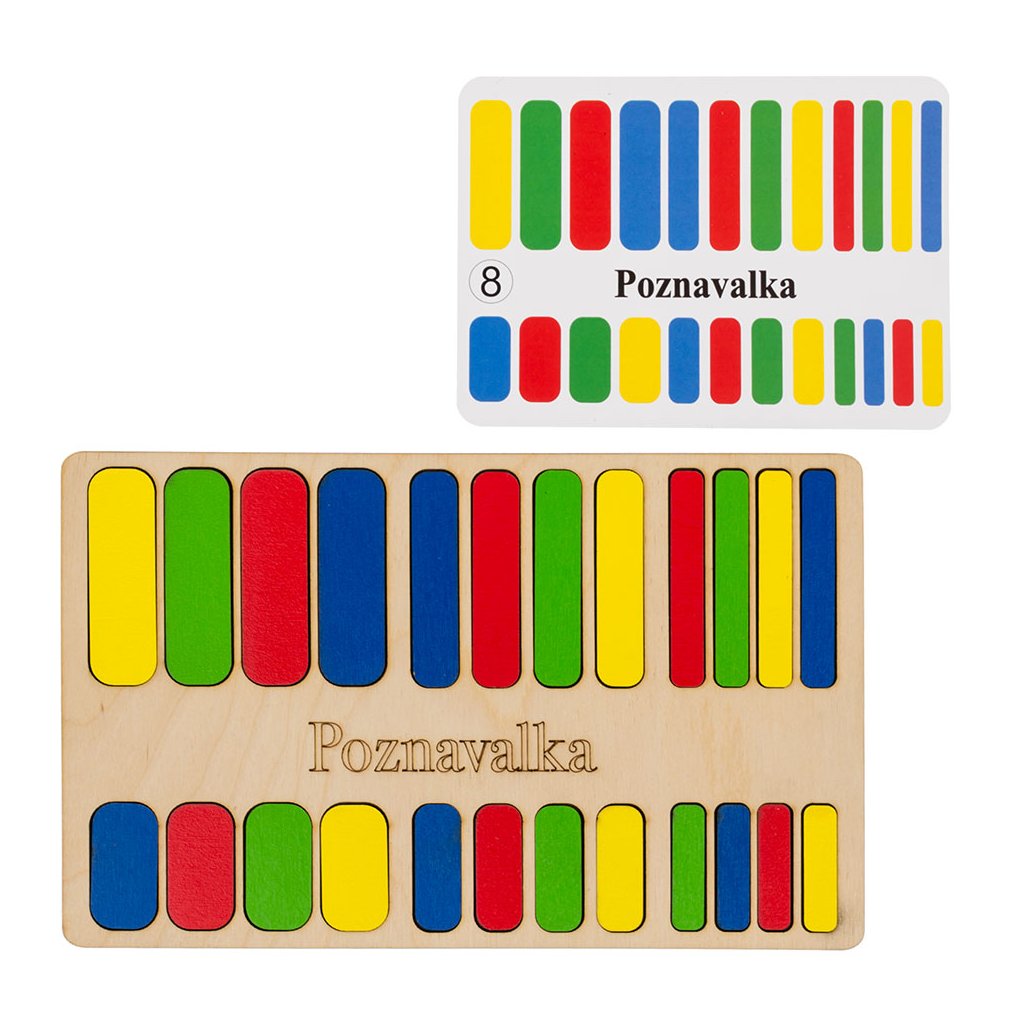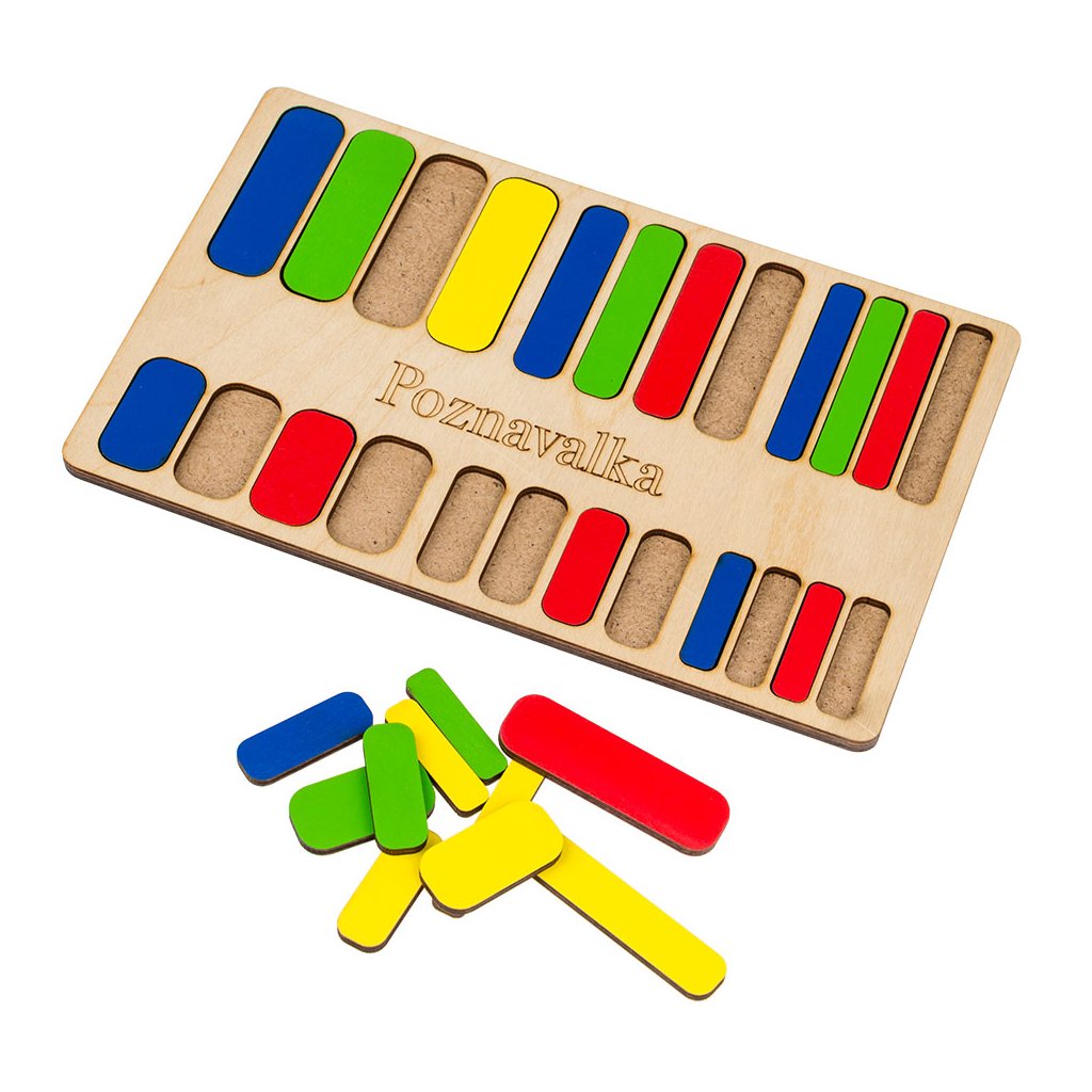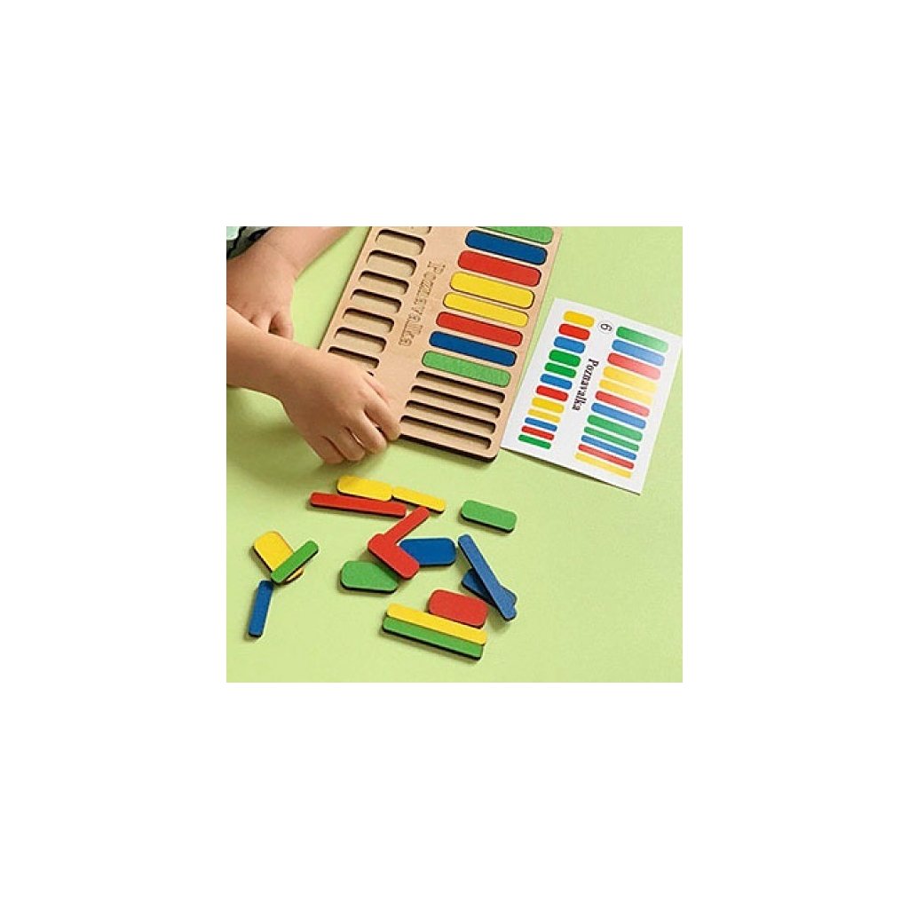 Dítě si při skládání do podložky musí uvědomit nejen délku, ale i šířku tyčinek. Vhodné k porovnávání, procvičení pojmů nízký/vysoký, úzký/široký apod.
