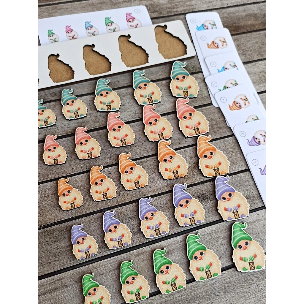 Roztomilí skřítci jsou prostě všude! A kolik jich je! Pomůžete je správně roztřídit? Unikátní počet dílků-skřítků - 25 ks (5 velikostí x 5 barev). Skládejte do podložky podle předloh, barev, nebo fantazie. Třiďte je podle velikostí a barev, počítejte. Vyrobte jim třeba postýlky, použijte do suchého smyslohraní s tématem pohádek... Děti je budou milovat i k volnému hraní :-).