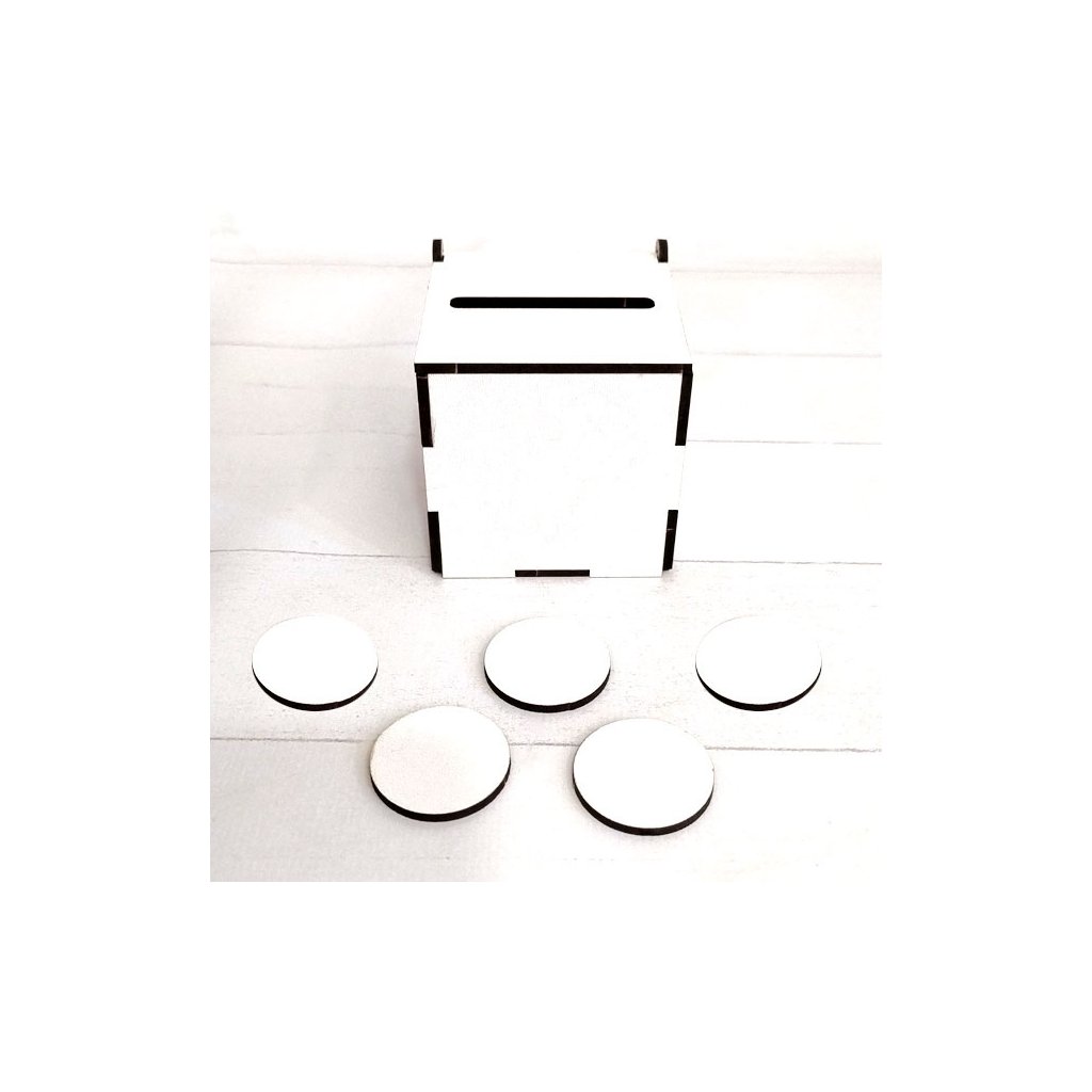 Rozměr krabičky: 6 x 6 x 6 cm, bílé žetonky 3 cm