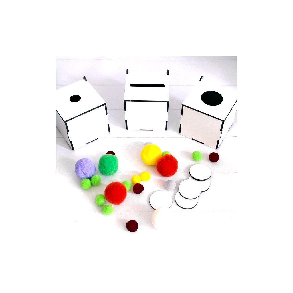 Třídící boxíky - vhazovací kostky set 3 ks (bambulky a žetonky)