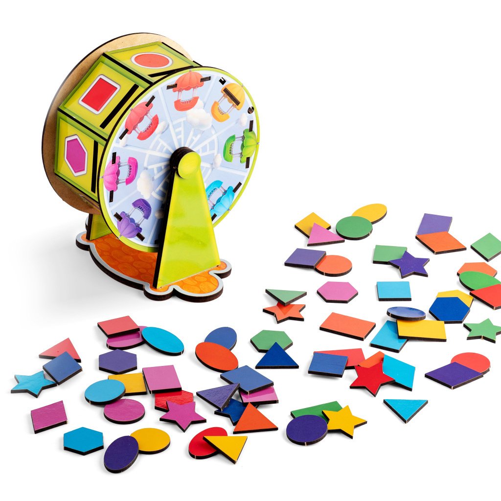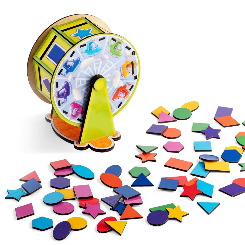 Zábavné otáčecí kolo jako vkládací boxy - třídění a vkládání dílků různých tvarů a barev. 8 tvarů v 8 barvách, celkem 64 dílků. Samotné dílky pak můžete využít pro další hry, skládání mandal, obrazců, třídící aktivity (třídění dle dvou parametrů barva-tvar)...