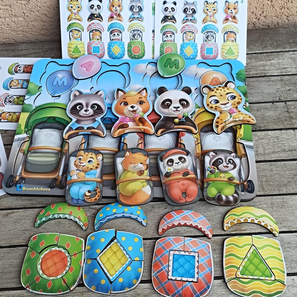 Nádherná originální logická vícevrstvá skládačka pro děti - zvířecí mámy s dětmi a kočárky. Zvládnete rozložit děti do správných kočárků, přikrýt je správnými dečkami (dečky se skládají z několika dílků), ozdobit stříšku kočárku a umístit maminky kam patří ? Spousta kartiček se zadáním, nádherné barevné provedení, roztomilá miminka... Děti se musí soustředit na skládání i správné rozmístění v obou vrstvách tohoto variabilního puzzle na kartičkách. Na některých kartičkách je část zadání pouze v nápovědách, děti musí nalézt asociaci. Procvičí prostorovou orientaci, jemnou motoriku, zrakové vnímání, samostatnou práci podle předlohy. Nebo mohou skládat sami dle své fantazie, toto velké netradiční vícevrstvé puzzle potěší každého předškoláčka !
